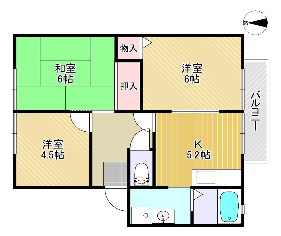 K 5.2畳 2階 和室 6畳 2階 洋室 6畳 2階 洋室 4.5畳 2階 |