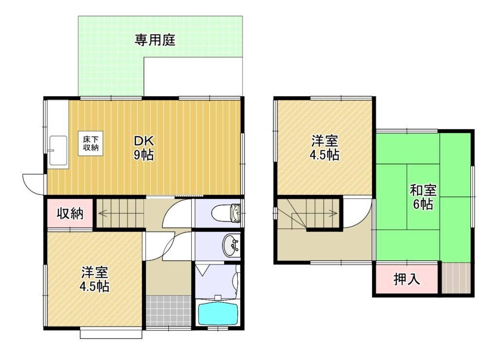 DK 8畳 1階 洋室 4.5畳 1階 洋室 4.5畳 2階 和室 6畳 2階 |